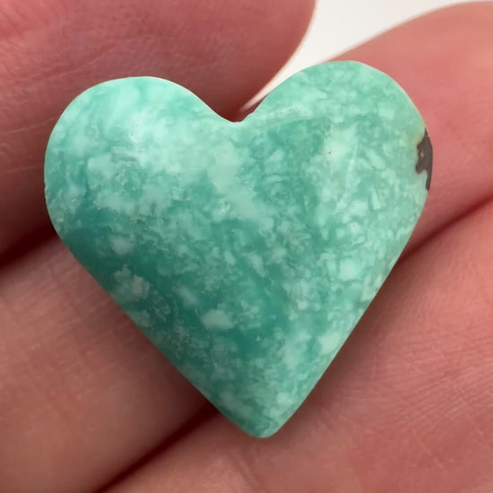 This gem is an ideal centerpiece for any jewelry design, ring, cuff, or pendant. Campitos Turquoise from Sonora, Mexico has striking light blue color. This stone was cut by an artisan into a heart shape.