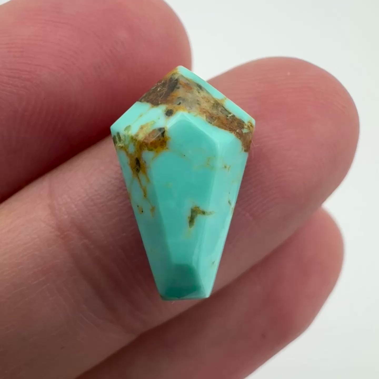 Turquoise from Kingman, Arizona, has dark matrix and lovely blue. This gemstone is perfect for jewelry making and wire wrapping, it would make a great ring or pendant. This stone was artisan cut into a coffin shape.