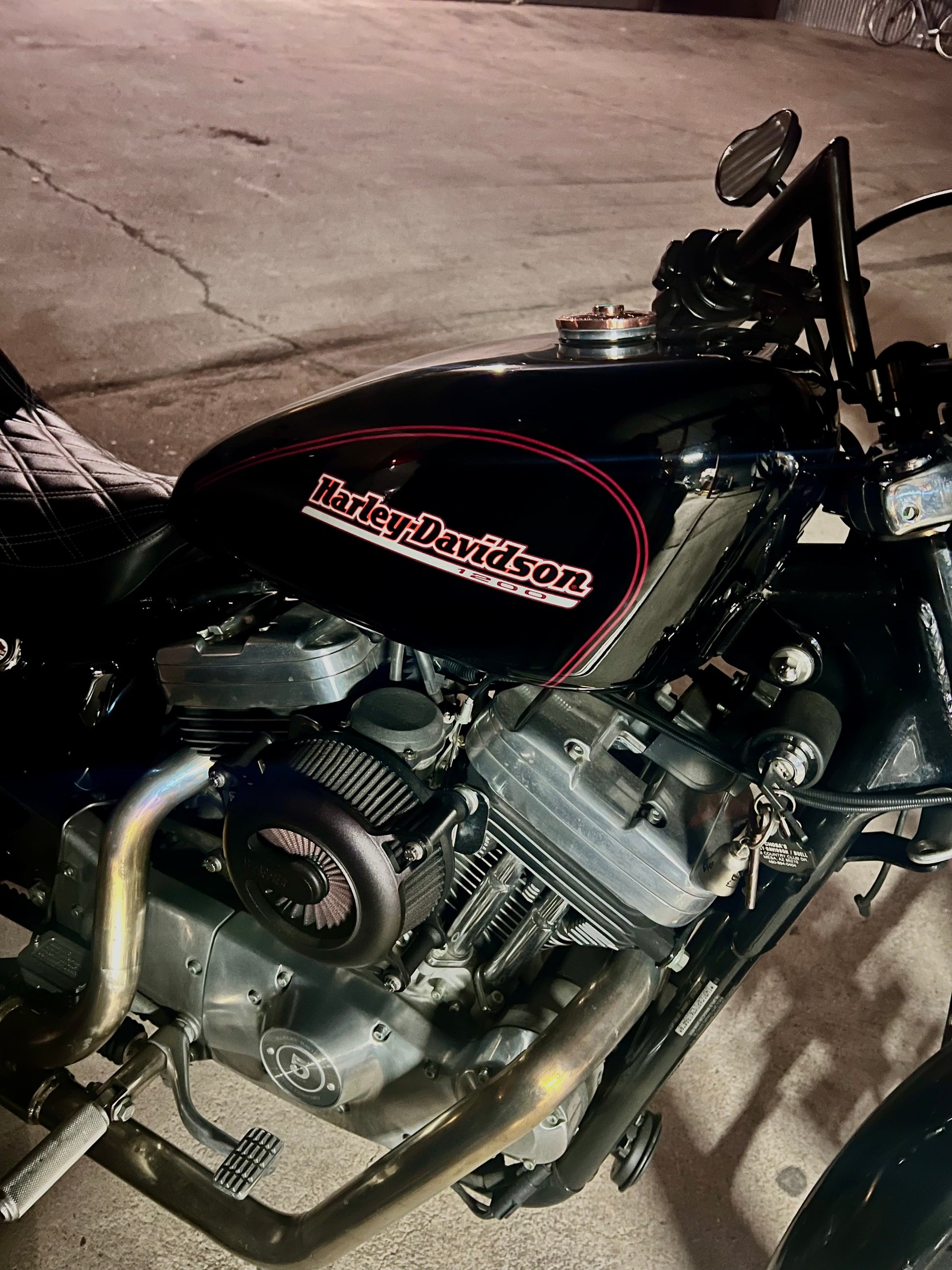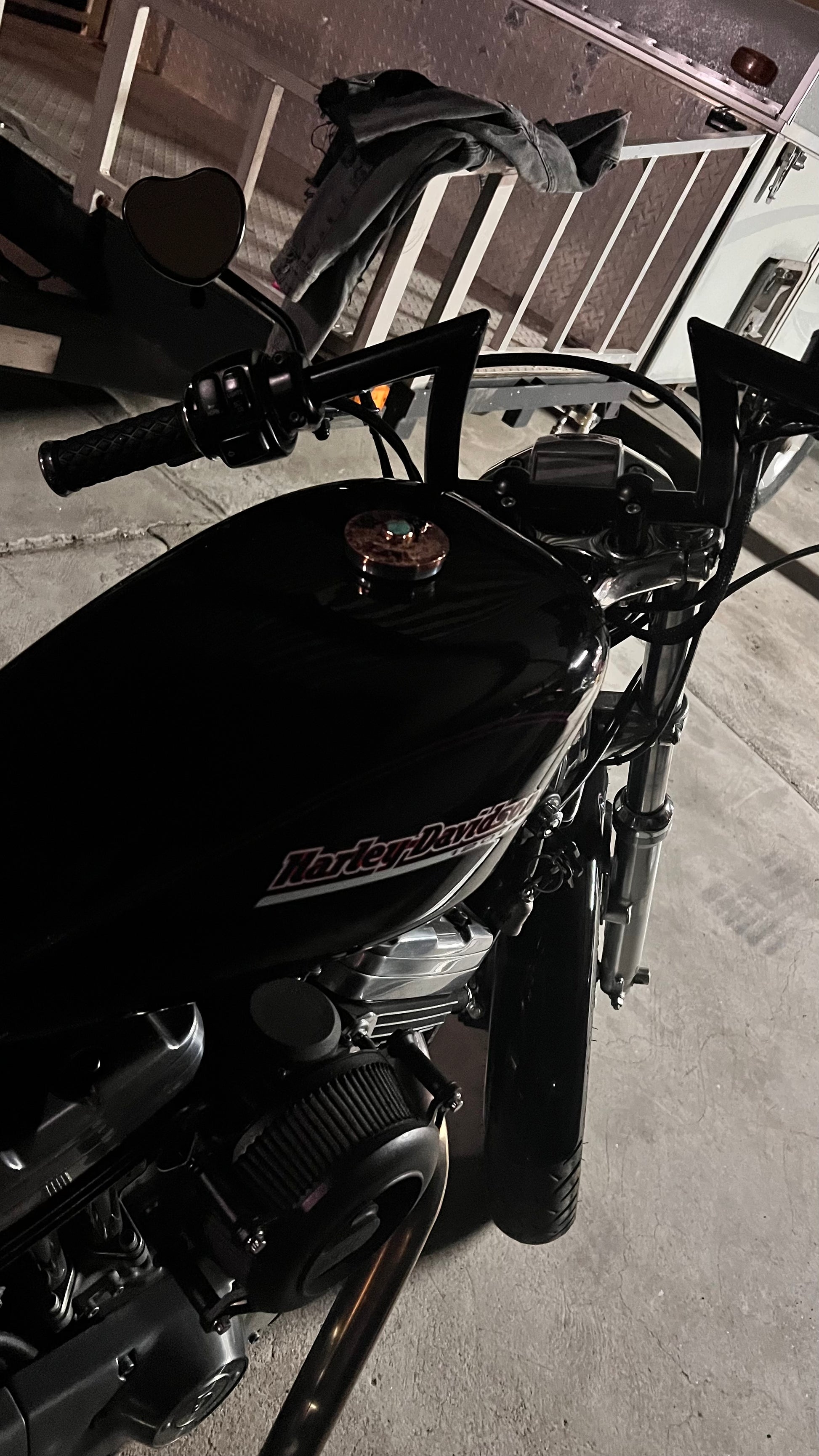 Harley style gas cap. Hand fabricated and stamped copper with Royston Nevada turquoise. Fits 96 and up and aftermarket gas tanks.