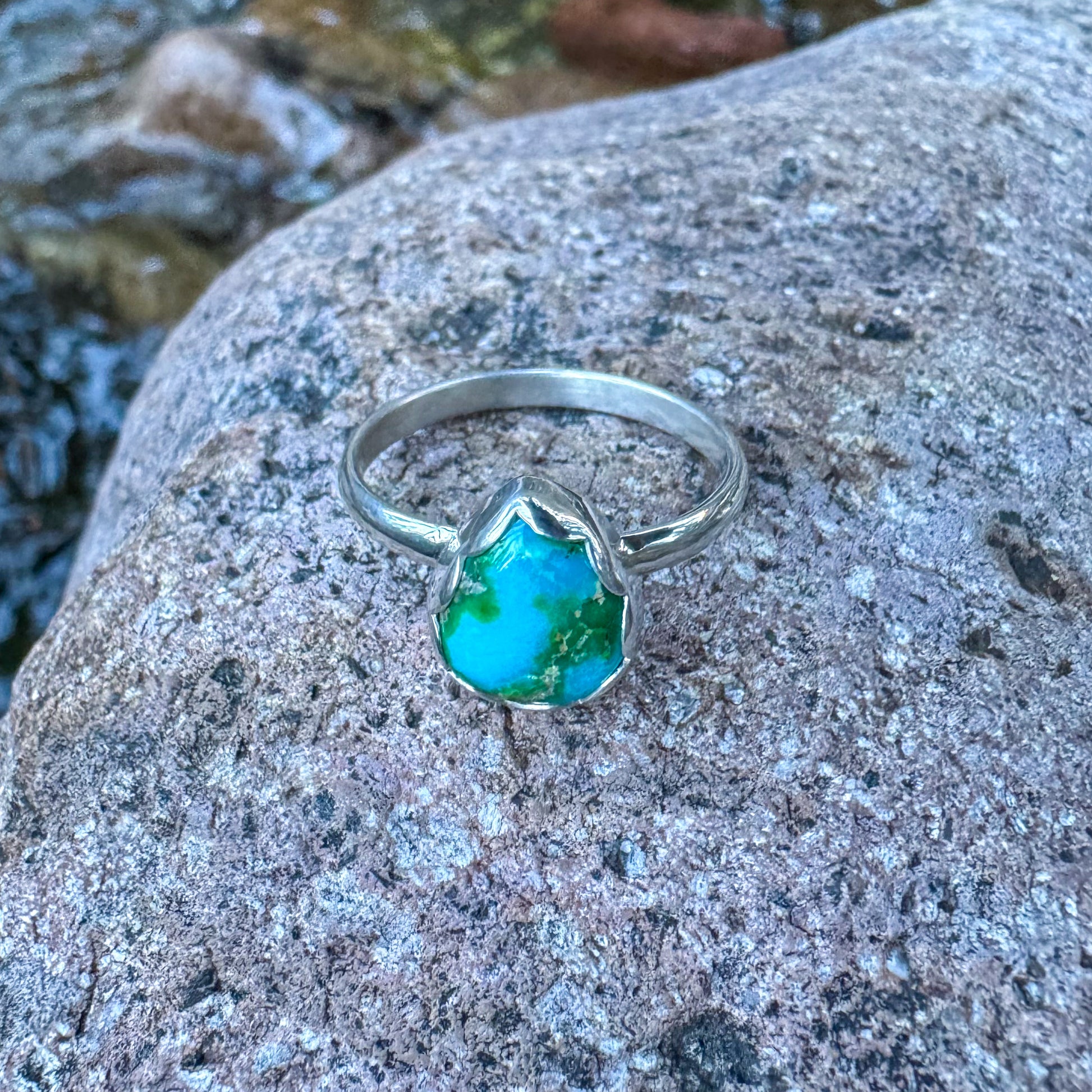 Hand fabricated solid Sterling Silver Sonoran Turquoise Ring. Size 10
