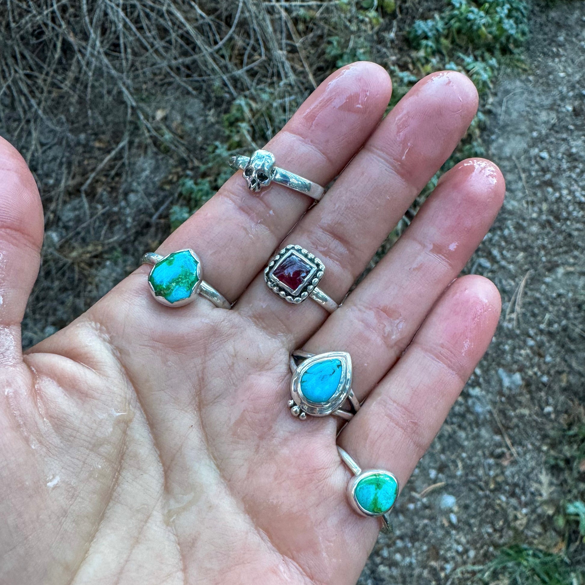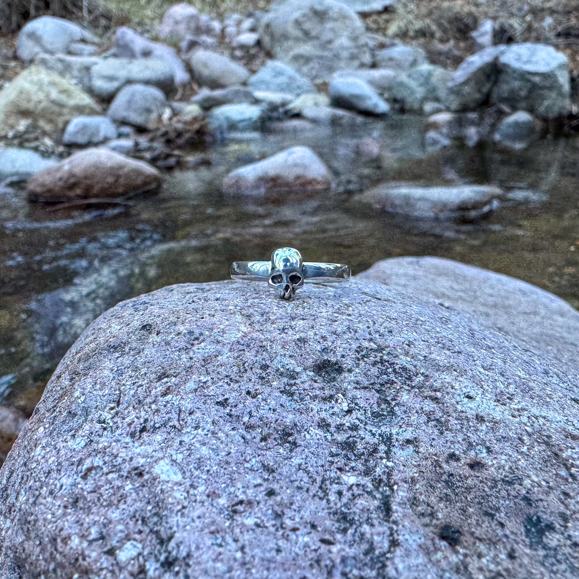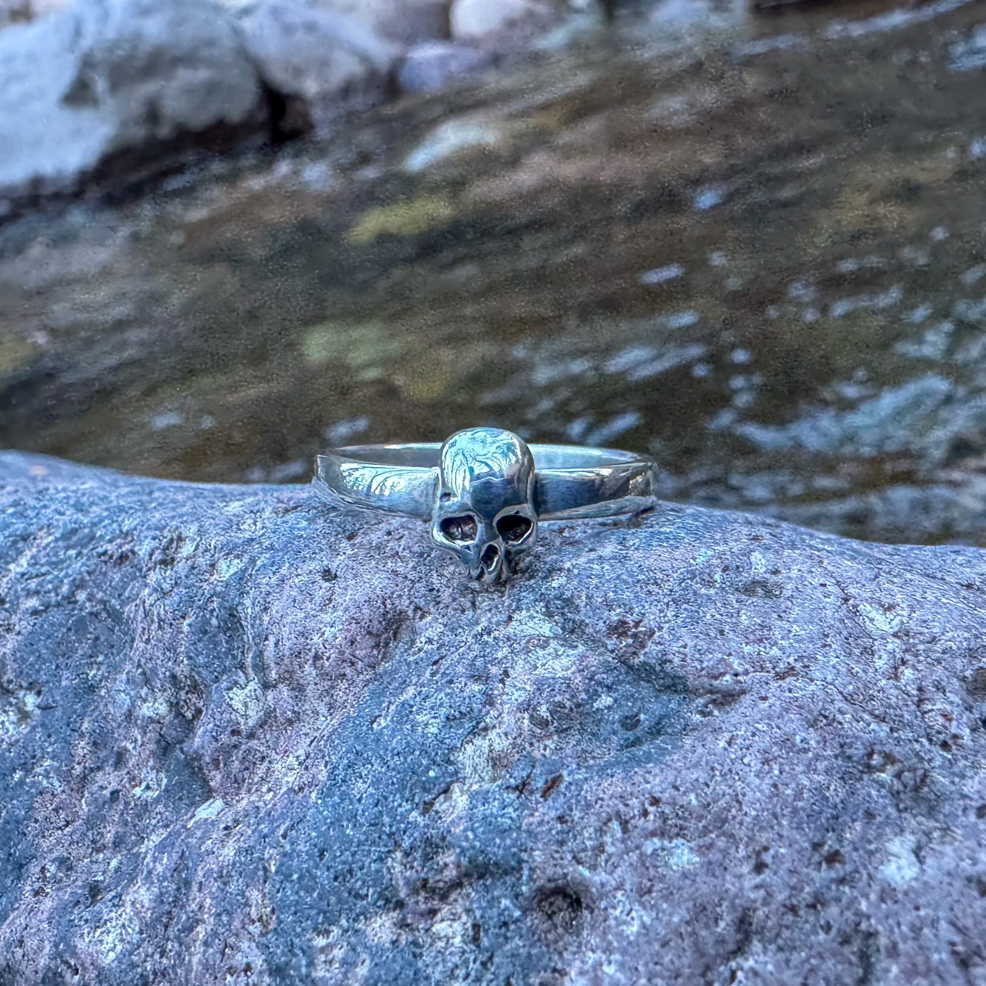 Solid Sterling Silver hand fabricated band and cast skull.